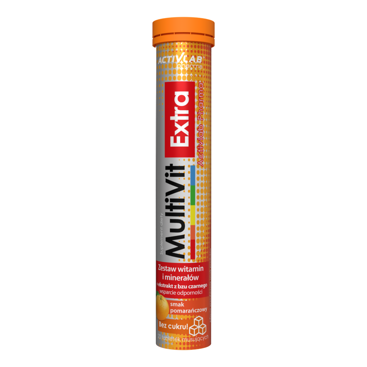 Multivit EXTRA Activlab Pharma is an effervescent tablet supplement with essential vitamins, minerals, elderberry extract, vitamin C, and zinc to boost immunity. Sugar-free and diabetic-friendly.
