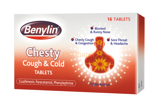 Benylin Chesty Cough and Cold Tablets are a form of treatment that provides relief for a chesty cough and also provide relief from a cold. These tablets contain three active ingredients that all help to treat symptoms.