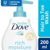 The Dove BABY Head-To-Toe Wash in a 200ml size offers gentle cleansing for delicate baby skin. Specifically designed to be fragrance-free, it caters to babies with sensitive skin, ensuring a gentle and soothing bathing experience. This product is formulated with care, prioritizing the moisturizing needs of babies’ skin without the use of harsh chemicals or strong fragrances.