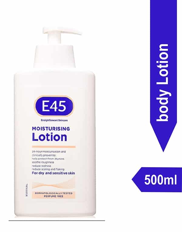 E45 Moisturising Lotion is a dermatologically tested lotion designed to provide long-lasting hydration and relief for very dry and sensitive skin.