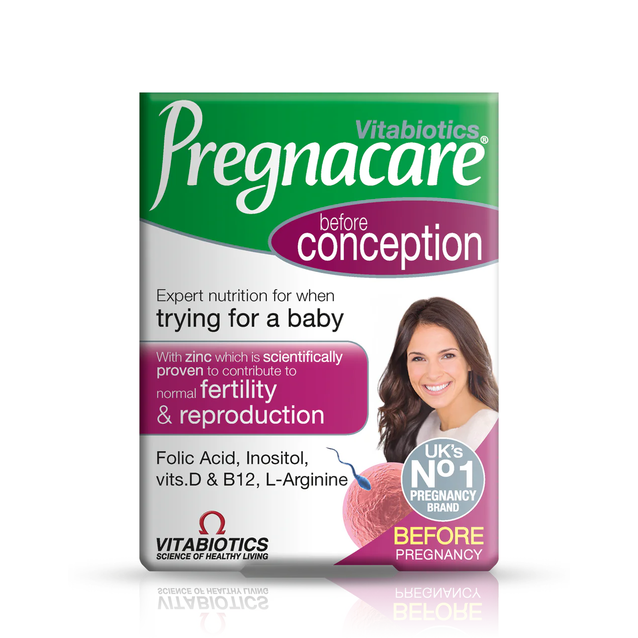 pregnacare conception tabs provide essential vitamins and minerals to support women trying to conceive. each pack contains 30 tablets, enriched with folic acid and vitamin d to promote normal fertility.