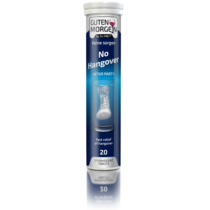 Swiss Energy GUTEN MORGEN is an effervescent tablet that provides fast relief from hangovers by replenishing lost nutrients and restoring energy levels. Common side effects include mild gastrointestinal discomfort.