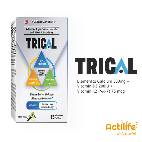 Trical Chewable Tablets (15’s) are a nutritional supplement designed to support bone health and manage calcium deficiency. Each chewable tablet contains a combination of essential nutrients, including calcium and vitamin D, which are crucial for maintaining strong bones and overall skeletal health. These tablets are particularly beneficial for individuals at risk of osteoporosis, pregnant women, and those with dietary restrictions that may lead to low calcium intake. The chewable format makes it easy and convenient to consume, ensuring better compliance, especially for those who may have difficulty swallowing pills. For optimal results, it is recommended to take the tablets as directed by a healthcare professional. Regular intake can help improve bone density and support overall health.